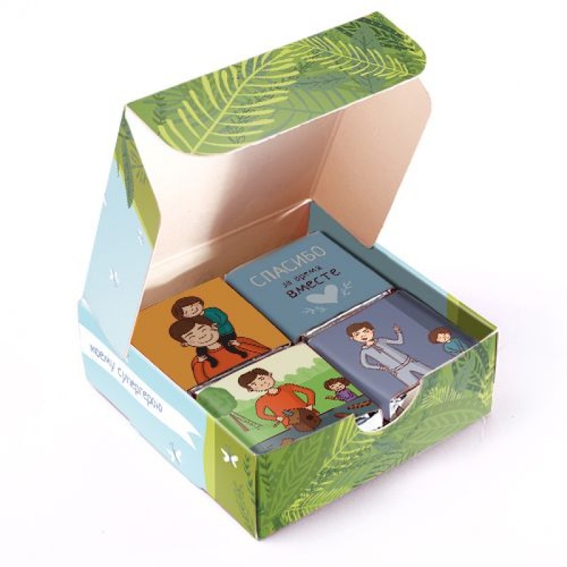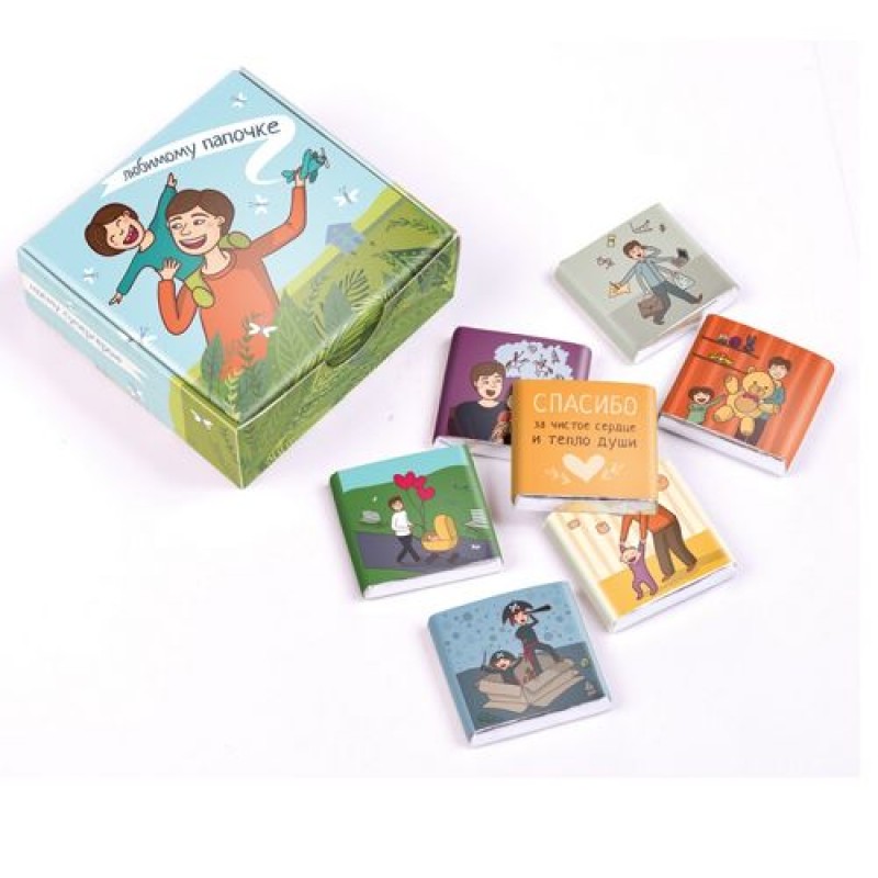 Хотите сделать для папы приятный сюрприз - преподнесите в подарок шоколадный набор, который внутри имеет 12 плиточек шоколада с красивыми словами благодарности и пожеланиями. Оригинальный шоколадный сюрприз станет отличным лекарством для получение заряда всетлых и ярких эмоций.