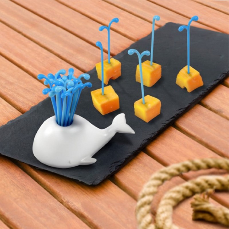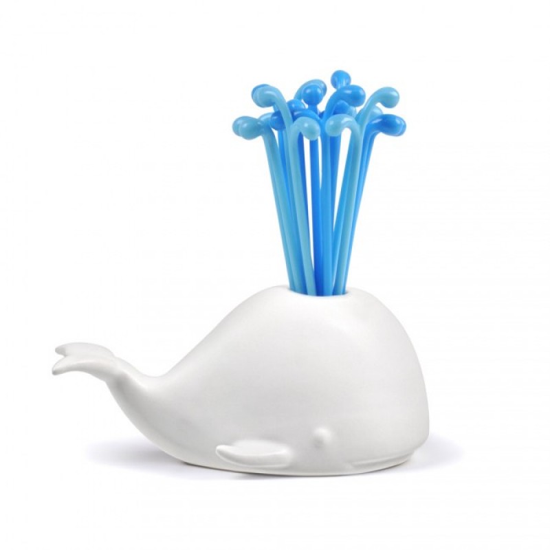 оригинальный предмет, который способен поднять настроение абсолютно всем на любой вечеринке. В комплект входит миленький кит и 32 шпажки, которые вставляются в кита, имитируя поток воды. Такие шпажки купить можно далеко не везде, однако Вам повезло – у нас они есть. Кит изготовлен из керамики, а шпажки – из пищевого пластика. Шпажки многоразового использования. Поставляется в фирменной подарочной упаковке от Fred and Friends. Оригинальный продукт бренда Fred and Friends.