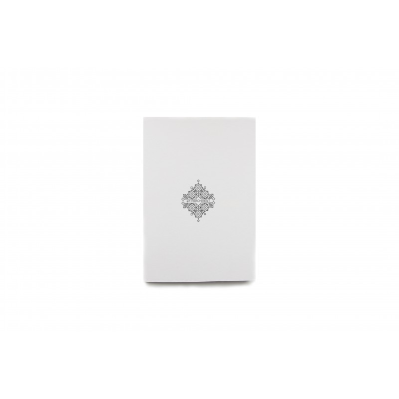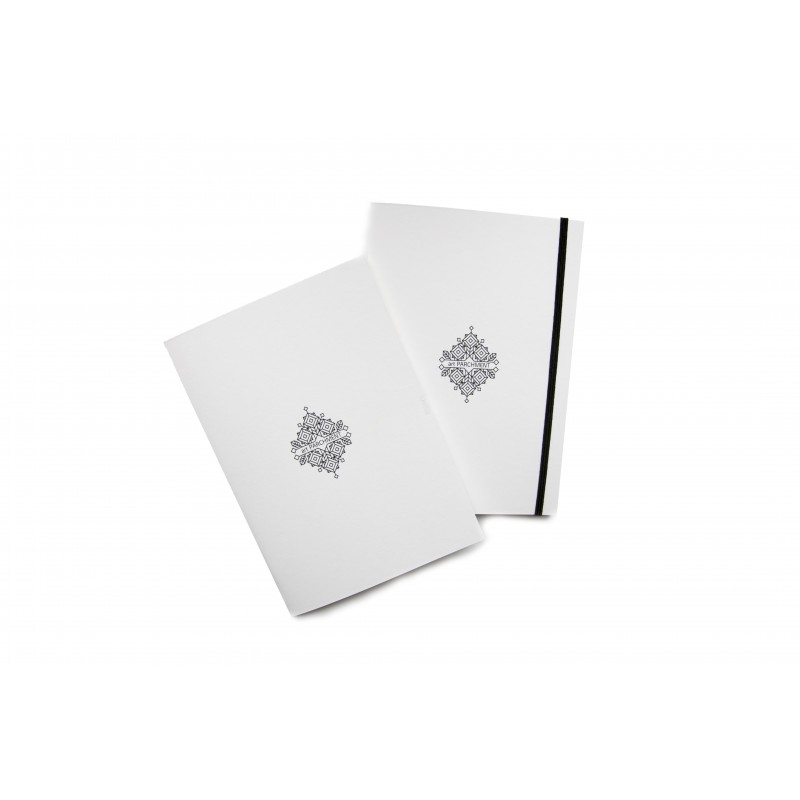 Обложка изготовленная из высококачественного дизайнерского картона, внутренний блок содержит 68 страниц качественной бумаги шведского производителя Munken кремового цвета плотностью 90 гр/м2, которые скреплены двумя металлическими скобами.