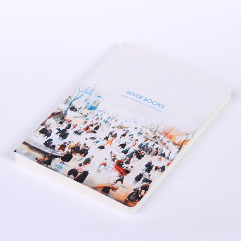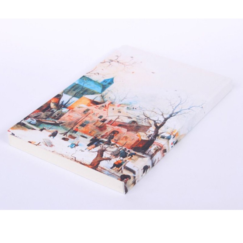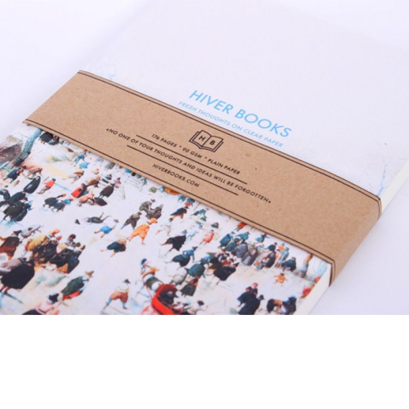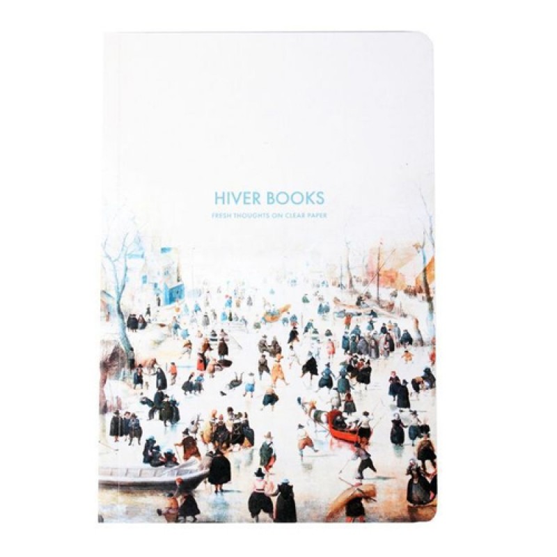На обложке зимний пейзаж с конькобежцами, атмосферная и по своему сказочная картина Хендрика Аверкампа. Скетчбук с плотной обложкой и 128 страницами нелинованной бумаги кремового цвета.