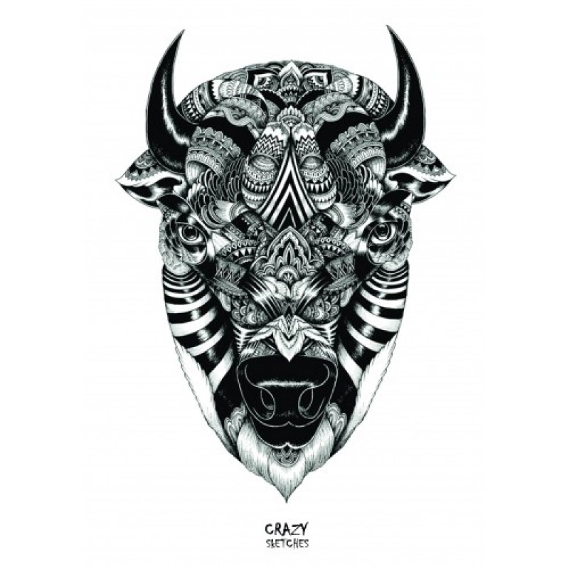На обложке Скетчбука "Buffalo" изображено произведение известного британского художника Iain Macarthur. Работы Iain Macarthur уникальны в своем роде. Применяя технику Zendoodling (сочетание техник Zentangle и Doodling), Iain создает причудливые сюрреалистические произведения, соединяющие в себе модерн, природу и оригинальность текстильных узоров. В основном, это черно-белые рисунки животных, птиц и людей, выполнены ручкой и карандашом, и украшенные узорами из простых линий, что создает необыкновенный эффект преобразования от простого к сложному. В каждой картине Iain есть что-то совсем странное и в то же время замечательное. Благодаря современной технике Zendoodling и таланту художника Iain Macarthur скетчбуки Crazy Sketches вдохновляют на создание прекрасных рисунков.