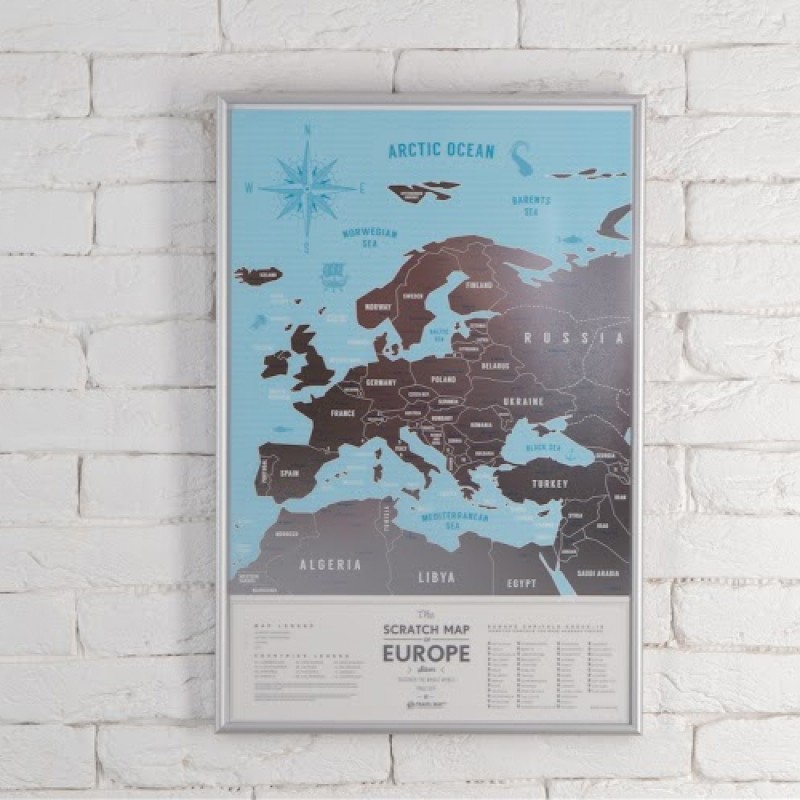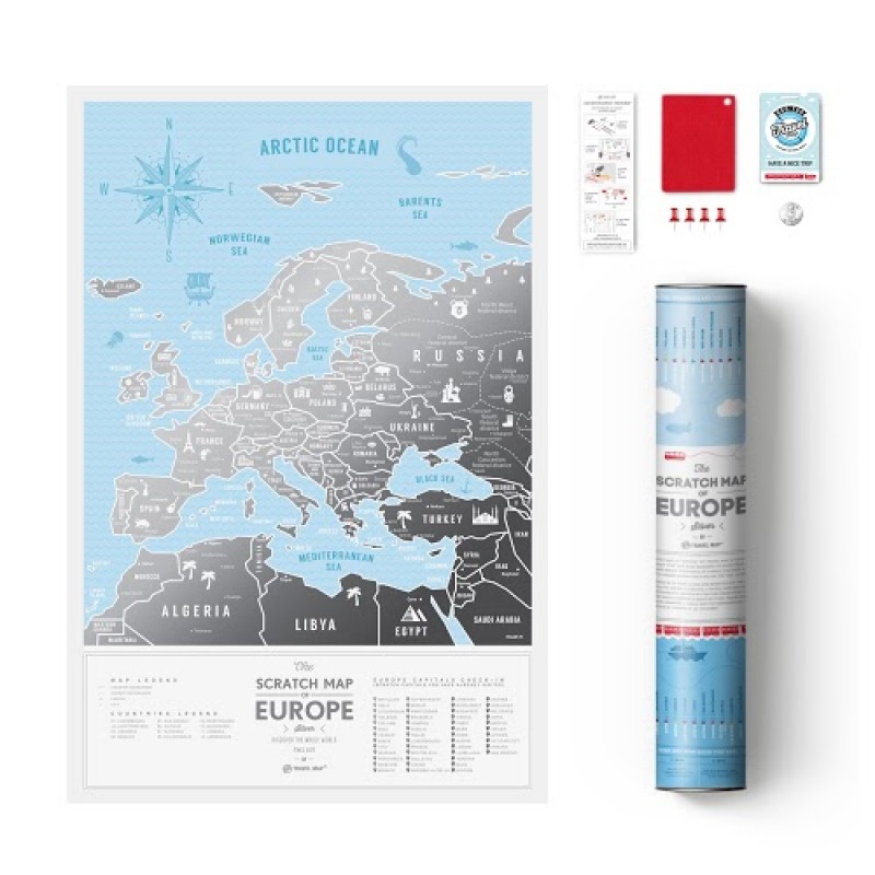 Скретч-карта Европы "Travel Map Silver Europe" - необычный подарок, который произведет яркое впечатление на человека, которому дарят ее. Карта идет на английском языке. Уникальность карты в том, что она единственная изгатавливается из пластичного пластика с серебристым скретч-покрытием. Стирая монеткой скретч-слой, Вы увидите разноцветные территории стран, их столицы и достропримечательности. Карта упакована в стильный, подарочный тубус с загадкой-ребусом. На карте можно отмечать места, которые Вы мечтаете посетить, либо те, где уже побывали. Язык английский.