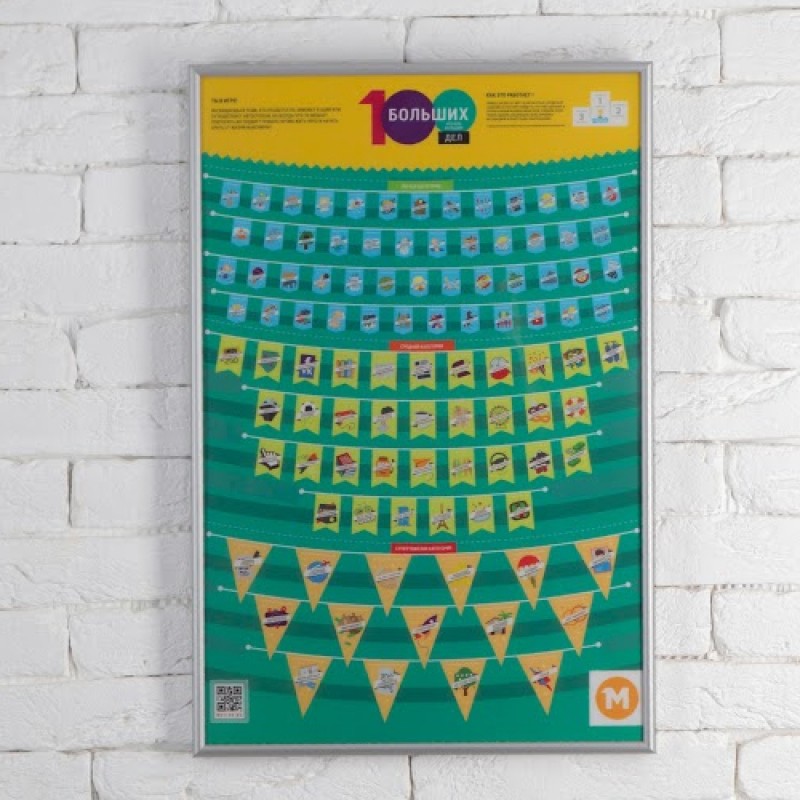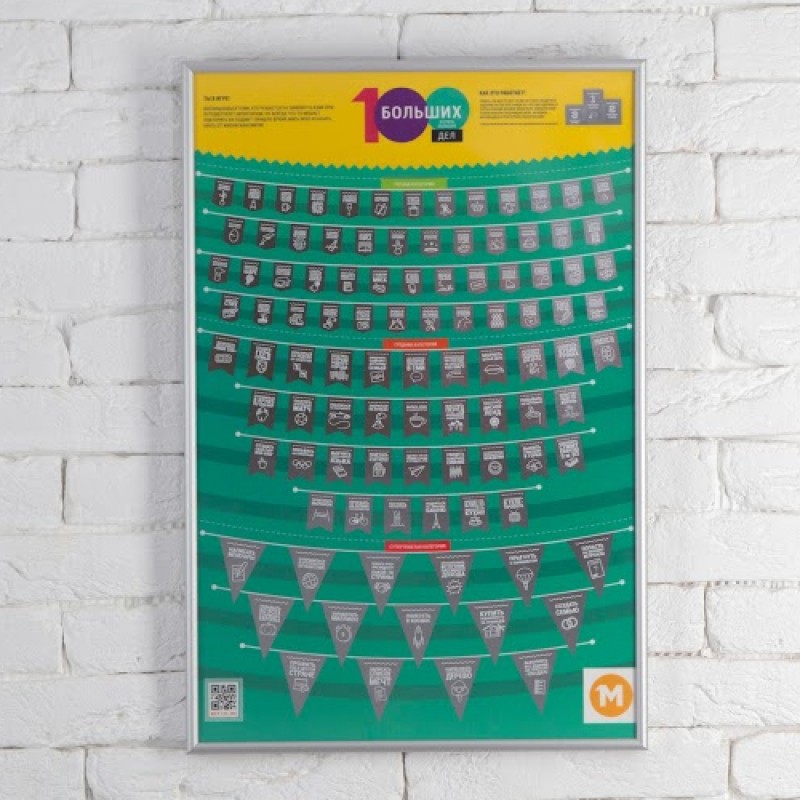 Скретч-постер "100 больших и очень больших дел" - оригинальный подарок для человека, который мечатет о каких-либо делах, но никак не модет их выполнить.