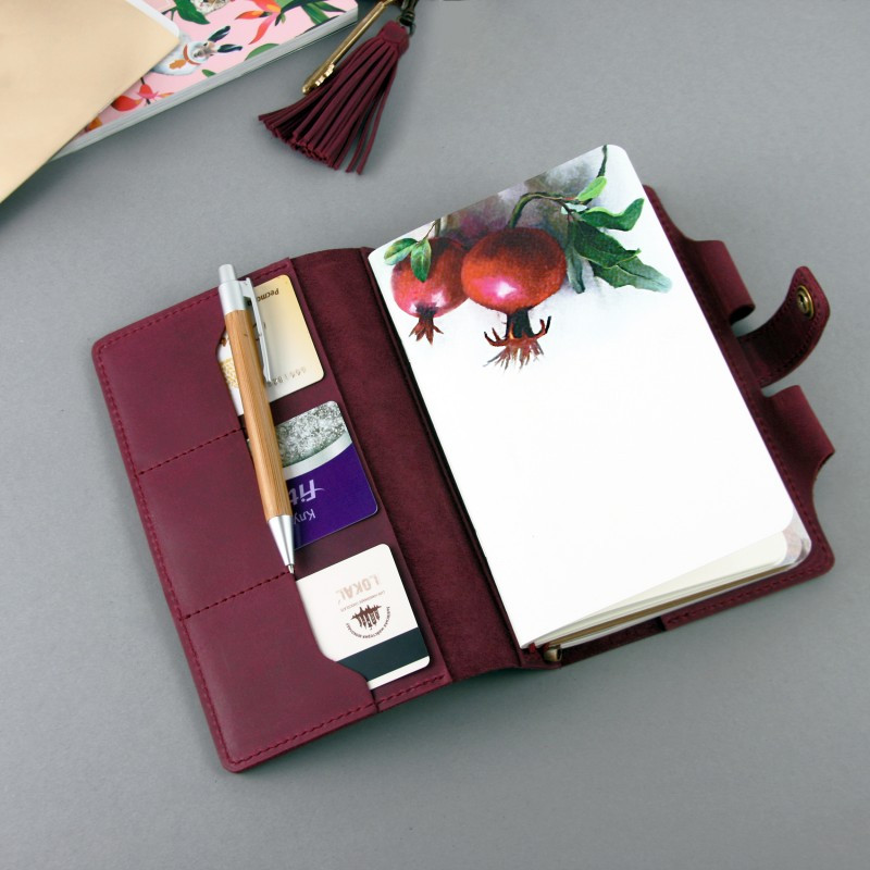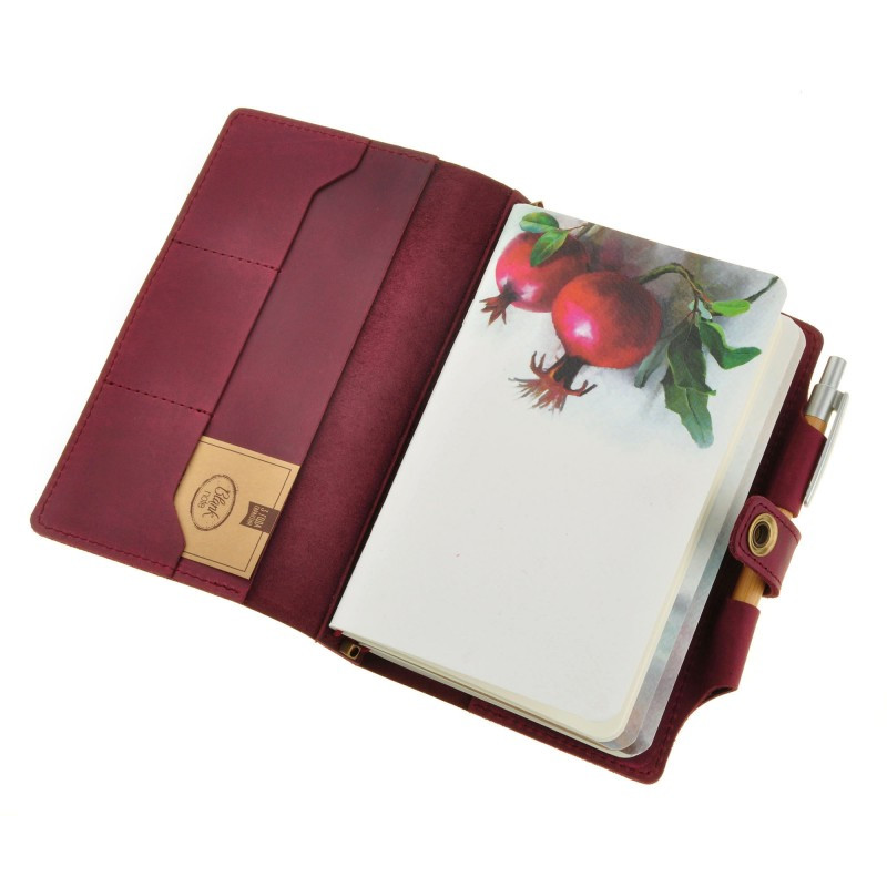 Для функциональности софт-бук оснащен удобным держателем ручки, или карандаша. На передней и задней внутренних сторонах обложки, есть большие карманы для документов. Также три отделения для визиток, или карточек на передней, внутренней стороне обложки. Закрывается софт-бук с помощью хлястика, на кнопку. В комплекте с обложкой, как обычно, маленький сюрприз от мастерской - ручка BlankNote.