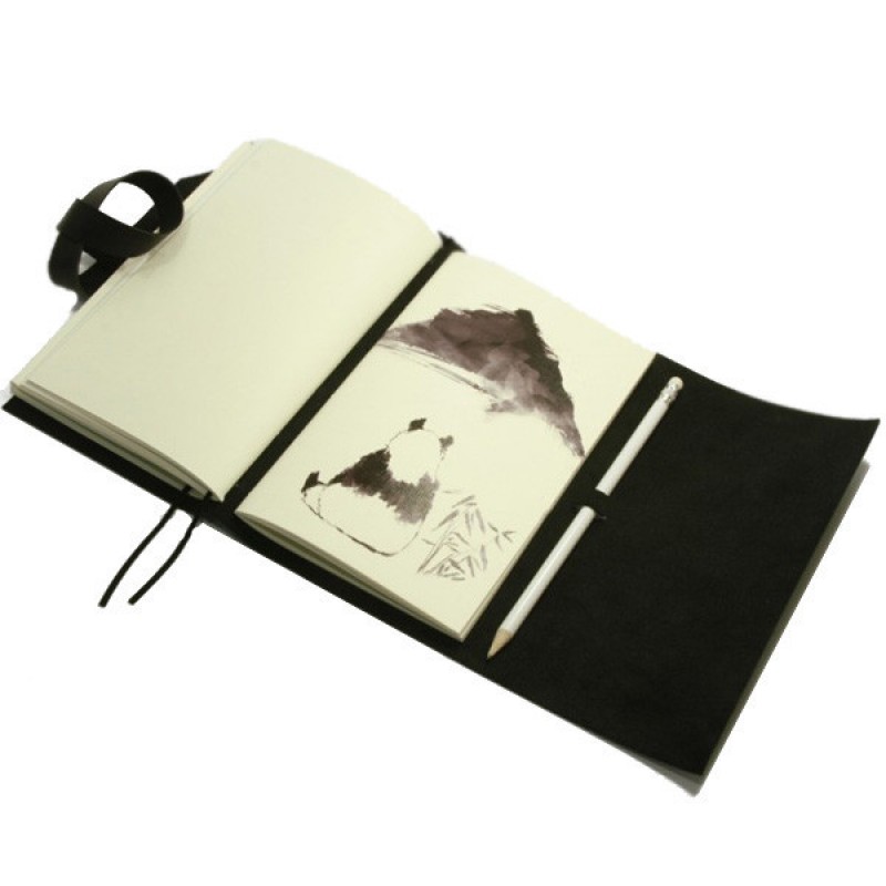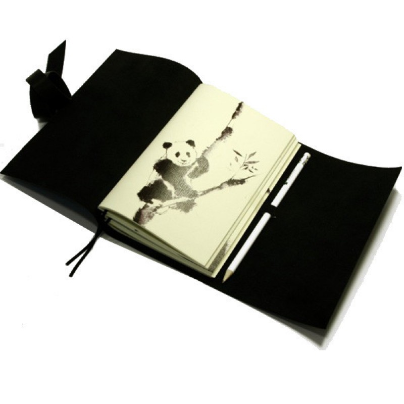 Софт-бук "Панда: черно-белые зарисовки" не просто блокнот, т.к. у него переплет не обычный книжный, а переплет "софт-бук" - пришитые к цельному куску кожи несколько тетрадей. Отличный подарок для тех, кто любит изделия ручной работы.