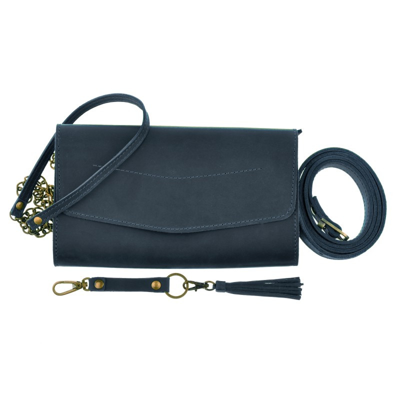 Сумочку можно носить на цепочке, на груди и даже за спиной! Оптимальный размер вмещает предметы первой необходимости, но не стесняет движений. Внутреннее пространство организованно в виде двух отделений с быстрым доступом и отделения на молнии для важных мелочей. В коллекции представлены сумочки трех цветов и каждый из них прекрасен по своему: возможно прикоснувшись к изумрудной сумочке, вы почувствуете прохладу свежей травы после дождя, а бордовая – напомнит о спелых гроздьях сладкого винограда. Под такую сумочку идеально подойдут наши портмоне и кошельки модели 1.0, а также хорошее и позитивное настроение! По своему обычаю, для наших клиентов мы подготовили несколько приятных сюрпризов: - Съемную кисточку из кожи, которая служит милым украшением и может использоваться как брелок. - Холдер для ключей позаботится об их сохранности. - Браслет «Косичка» дополнит ваш идеальный образ. Сумка ручной работы из натуральной кожи. Размер: 23 x 13,5 x 3,5 см.