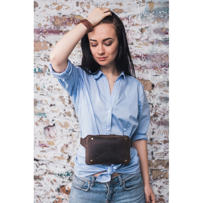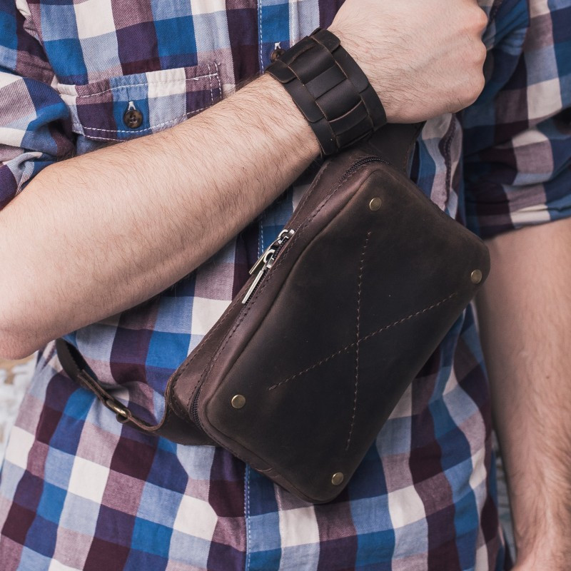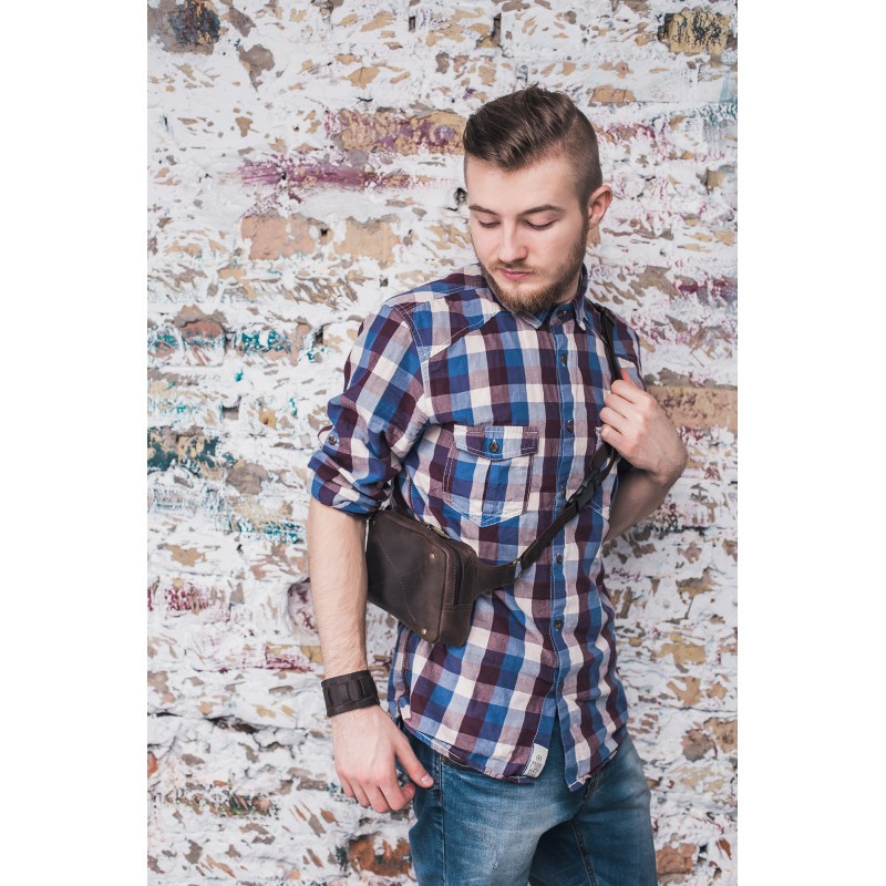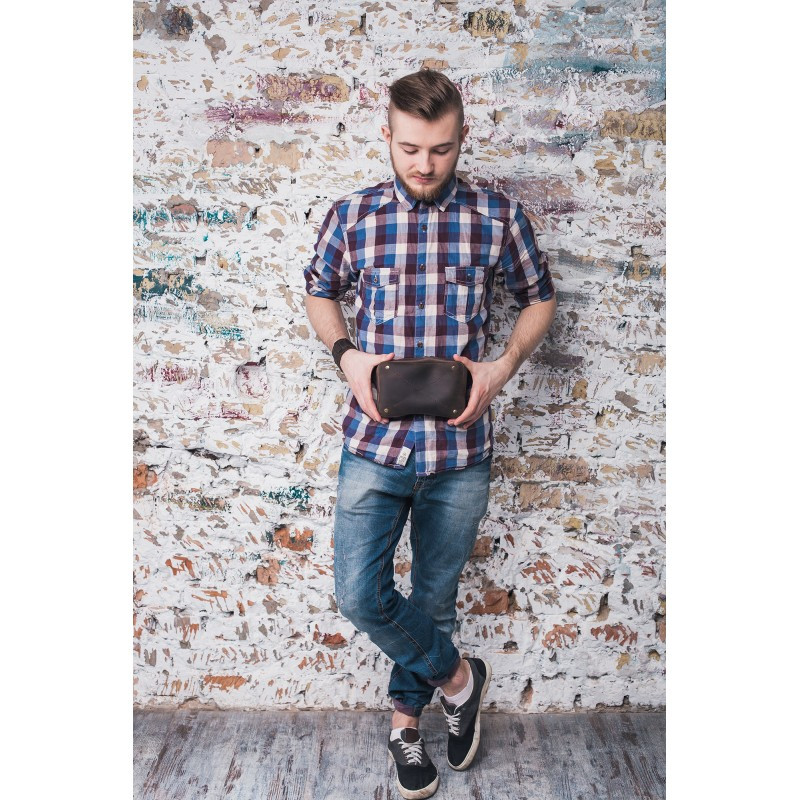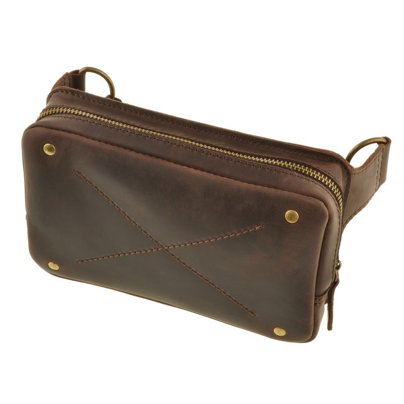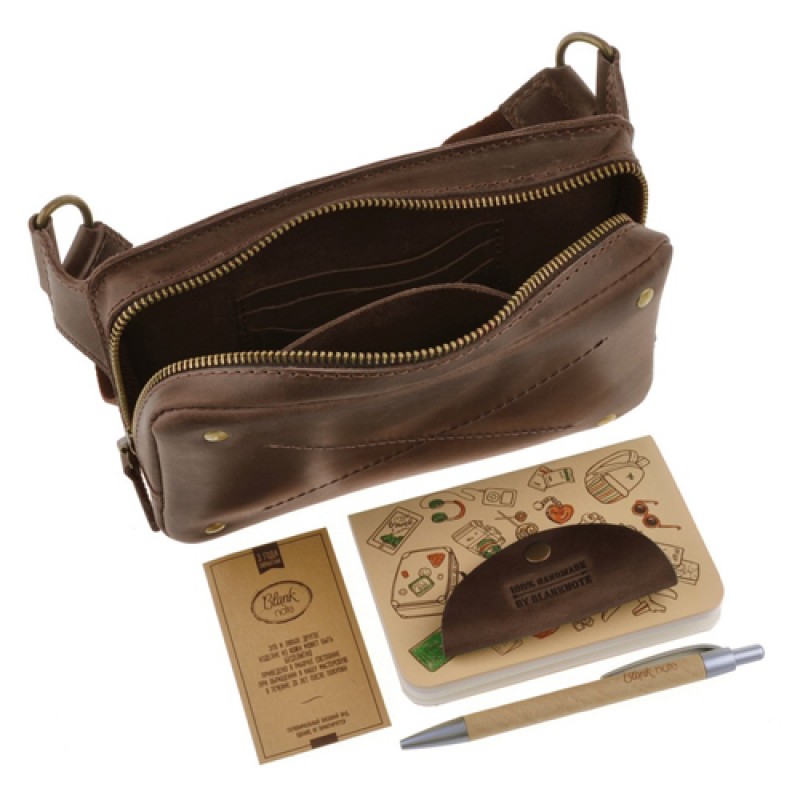 DropBag - это практичная сумка небольшого размера, которая носится на поясе или бедрах. А еще эту сумку удобно носить на груди благодаря полукольцам на ремне сумки. Такой вид сумок очень популярен сегодня во всем мире. Создавая DropBag дизайнеры компании Blanknote старались сохранить простой и практичный дизайн, но при этом сделать стильный и привлекательный аксессуар. Внутри имеется отделение для мелочей и пара кармашков для карточек, на задней стенке сумки вместительный карман, закрывающийся на молнию. Сумка изготовлена полностью вручную из натуральной кожи (2мм), используется качественная металлическая фурнитура. Аксессуар универсален, его могут носить как мужчины, так и женщины. Длина ремня регулируется от 70 до 100см (индивидуальный размер ремня можно изготовить под заказ). Внутри, как всегда, есть несколько приятных сюрпризов: - холдер для наушников, чтобы провода не спутывались - мини-тетрадка для записи Ваших интересных идей - фирменная крафт-ручка. Сумка упакована в крафтовую коробку.