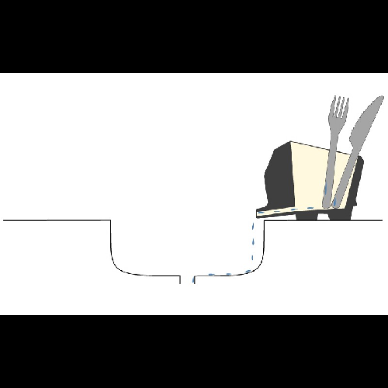 Сушилку надо располагать так, чтобы носик слоника спускался в умывальник, чтобы вода с приборов стекала прямо в раковину.
