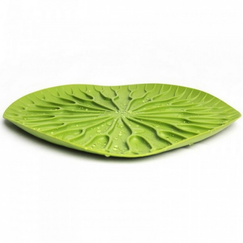 Как известно, лотосы растут в воде, а это значит, что великолепная сушилка для посуды в виде листка лотоса должна быть поближе к раковине! Поставьте ее на столешницу или в шкаф, чтобы вода с только что вымытых стаканов, чашек, тарелок или столовых приборов стекала вниз на силиконовые желобки. Плюс к этому, такую красоту можно использовать в качестве сервировочного подноса для овощей и фруктов или просто в качестве разноса напитков на вечеринке!
