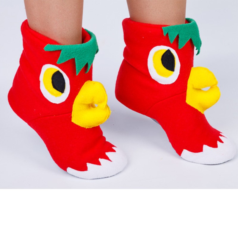 Веселый и разговорчивый попугай вдохновил многих творческих людей на создание мультфильмов, сценок, зарисовок, книг и так далее. Швейное производство Mettyтакже не осталось в стороне и приступило к пошиву флисовых тапочек Кеша. Флисовые тапочки Кеша своим оригинальным дизайном напоминаю настоящего попугая с клювом, хохолком и забавными глазками. Как вы уже догадались, для пошива мы выбрали флис. Эта ткань обладает множеством положительных характеристик. Флис очень мягкий, эластичный и приятный к телу. Он не вызывает аллергическую реакцию, что важно для людей с чувствительной кожей, и не накапливает статическое электричество. Флис хорошо пропускает воздух, но при этом обладает хорошими теплоизоляционными свойствами. Данная ткань не требует особого ухода, вполне достаточно машинной стирки, к тому же даже после нескольких сотен стирок и активной носки тапочки не потеряют своего первоначального внешнего вида. Подошва тапочек представлена высококачественным кожзамом, который не скользит по полу.