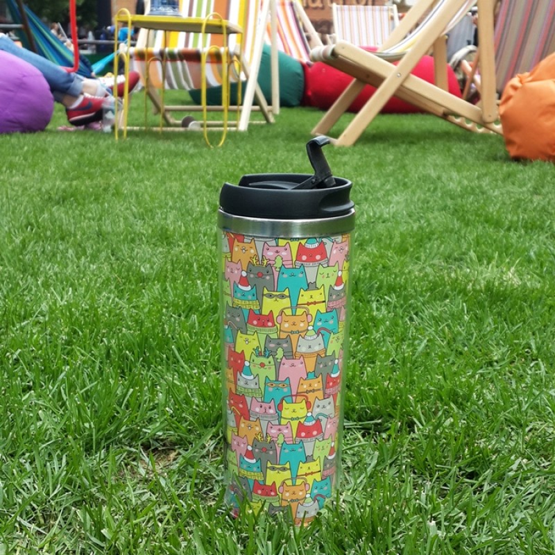 Где? На столе за компьютером или книгой, в подстаканнике машины, в кино вместе с попкорном, на прогулке с собакой, на улице с коляской, на велосипеде, на лыжах в горах,в походе у костра, на паре..