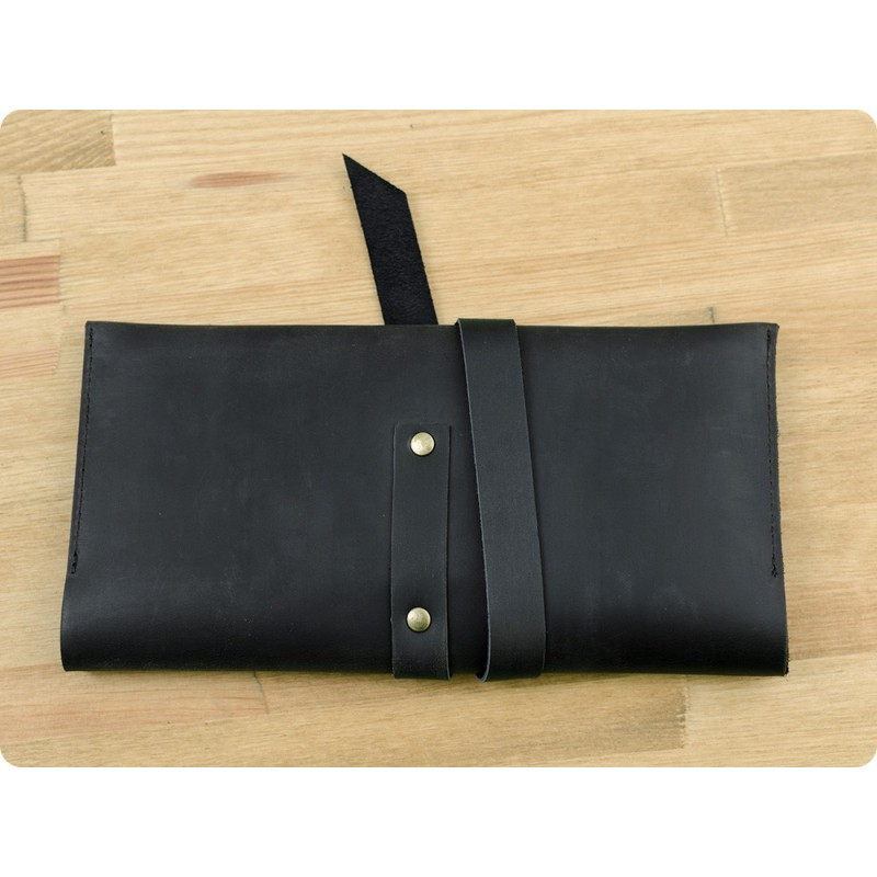 Цвет Тревел Кейса орех, с фактурой нубука, хлястика - графит, в тон которому подобраны нити и цвет тиснения Фабрики БланкНот, которое видно при открывании. Размер: 125х245мм.