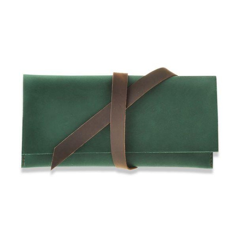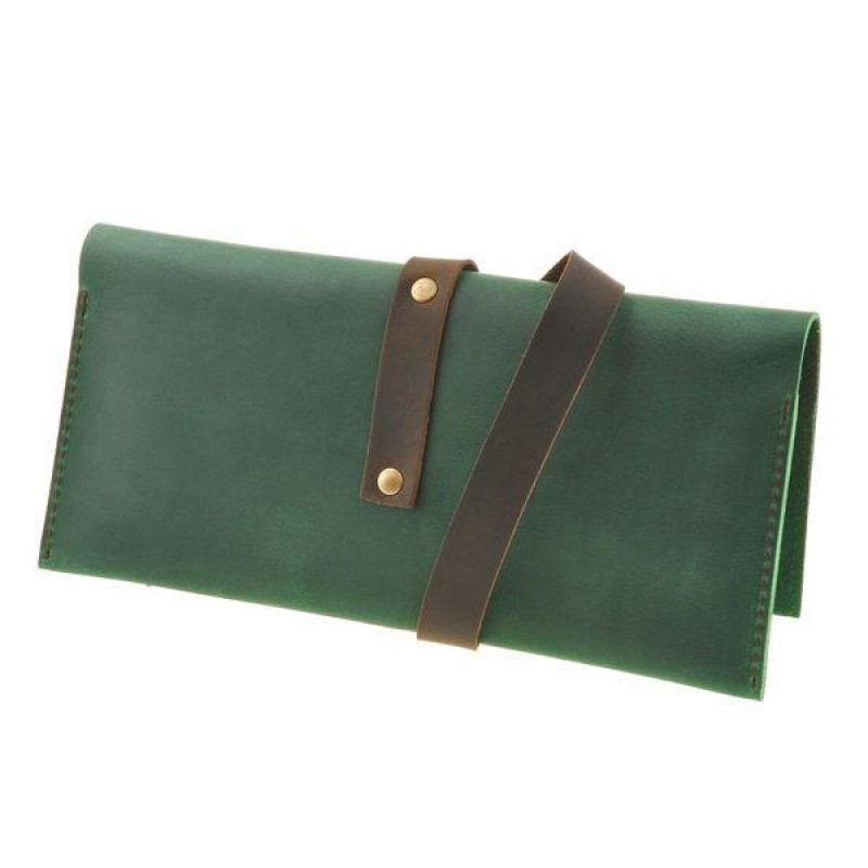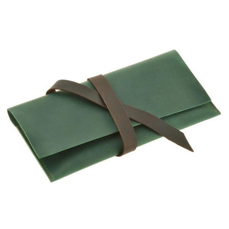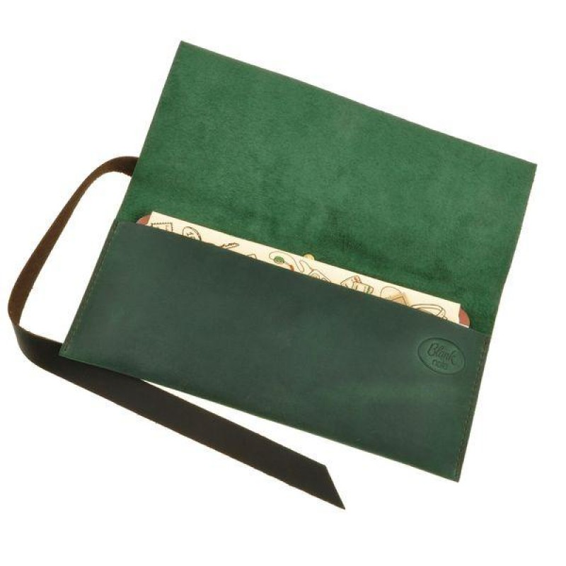 Это холдер для документов удобного размера, в котором поместятся посадочные талоны (или железнодорожные билеты), паспорта, деньги и масса других полезных вещей, которые должны быть всегда под рукой в путешествии. Холдер сделан полностью вручную из цельного куска очень плотной (2 мм) натуральной кожи. Закрывается он на кожаный хлястик, который крепится двумя люверсами, по совместительству формирующими держатель для канцелярских принадлежностей.