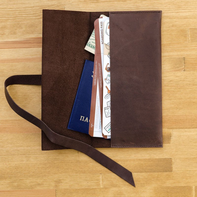 Закрывается тревел-кейс на поясок, это очень удобно и не даст разлететься в ненужный момент билетам и другим документам.