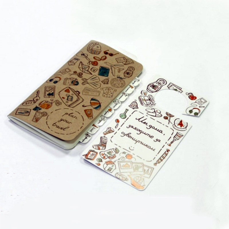 В комплекте с тревел-кейсом идет мини-блокнотик и табличка на дверь. Тревел-кейс упакован в стильную картонную коробку.