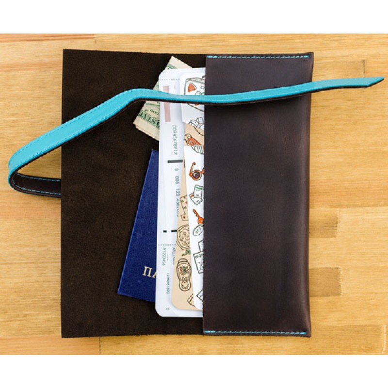 Закрывается тревел-кейс на поясок, это очень удобно и не даст разлететься в ненужный момент билетам и другим документам.