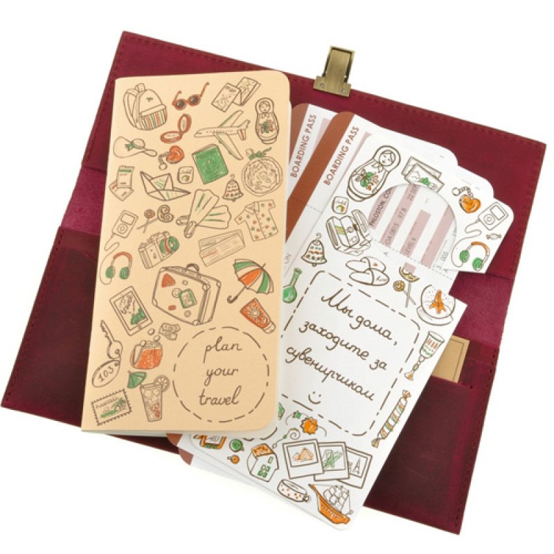 Тревел-кейс 2.0 Виноград выполнен из натуральной кожи в винтажном стиле. В комплект к тревел-кейсу идет блокнотик с наклейками разделителями и оригинальный хенгер на дверь.