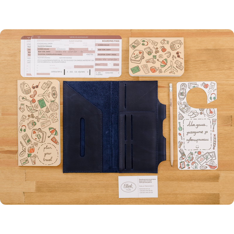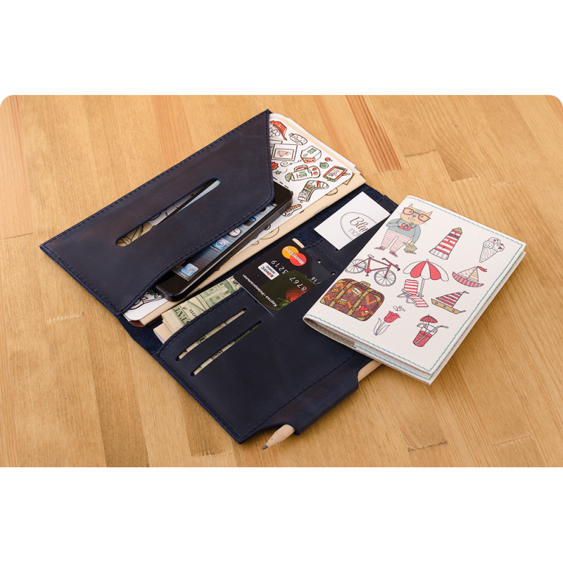 Это холдер для документов удобного размера (130х210мм), в котором поместятся посадочные талоны (или железнодорожные билеты), паспорта, деньги и масса других полезных вещей, которые должны быть всегда под рукой в путешествии.