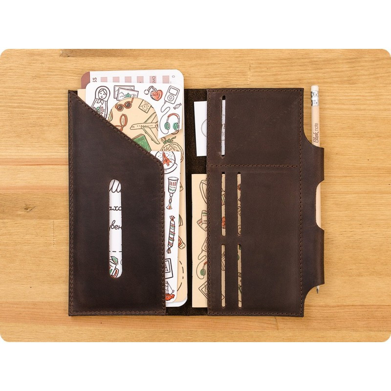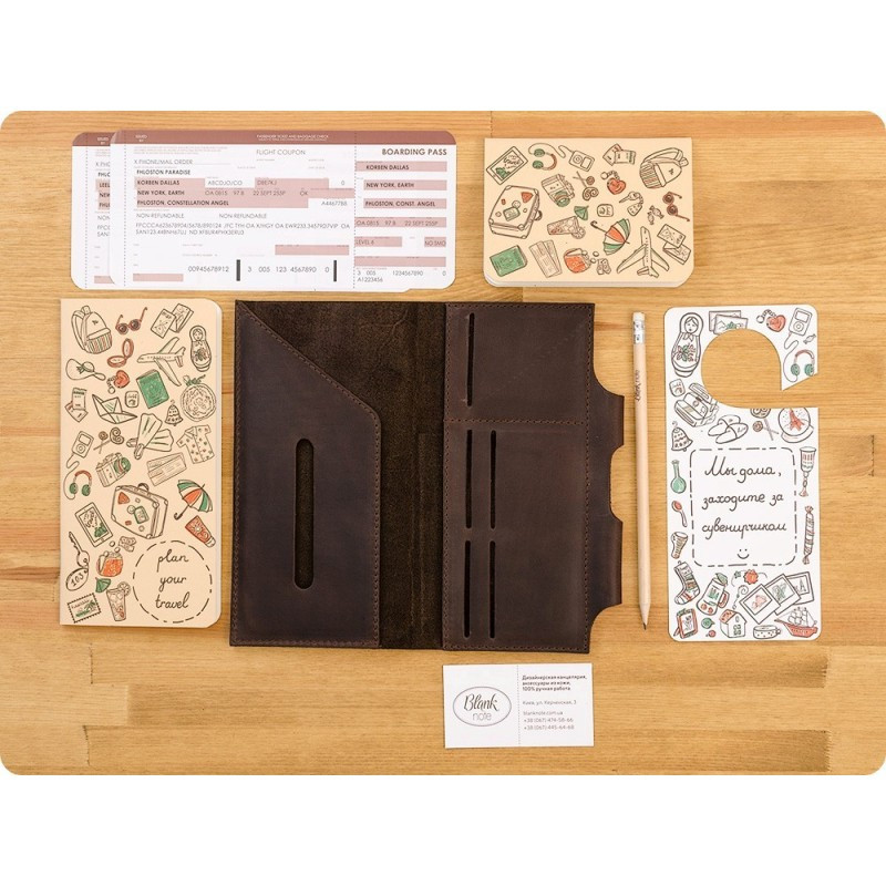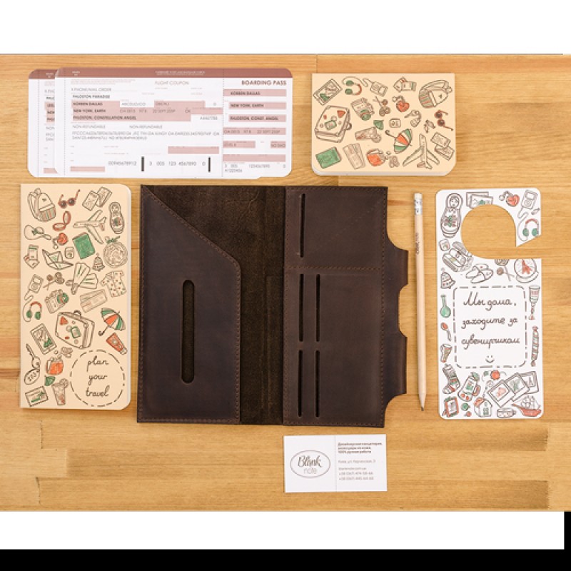 В комплект к тревел-кейсу идет блокнотик с наклейками разделителями и яркий хенгер на дверь. Материал: натуральная кожа. Размер: 13x21 см. Производитель: Украина.