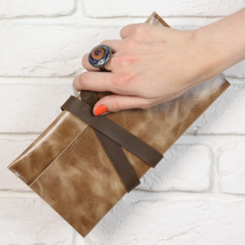Тревел-кейс ручной работы изготовлен из натуральной кожи, что говорит о высоком качестве товара. Холдер для документов закрывается с помощью ленточки отличного цвета от самого тревел-кейса.