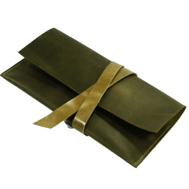 Тревел-кейс ручной работы изготовлен из натуральной кожи, что говорит о высоком качестве товара. Холдер для документов закрывается с помощью ленточки отличного цвета от самого тревел-кейса.