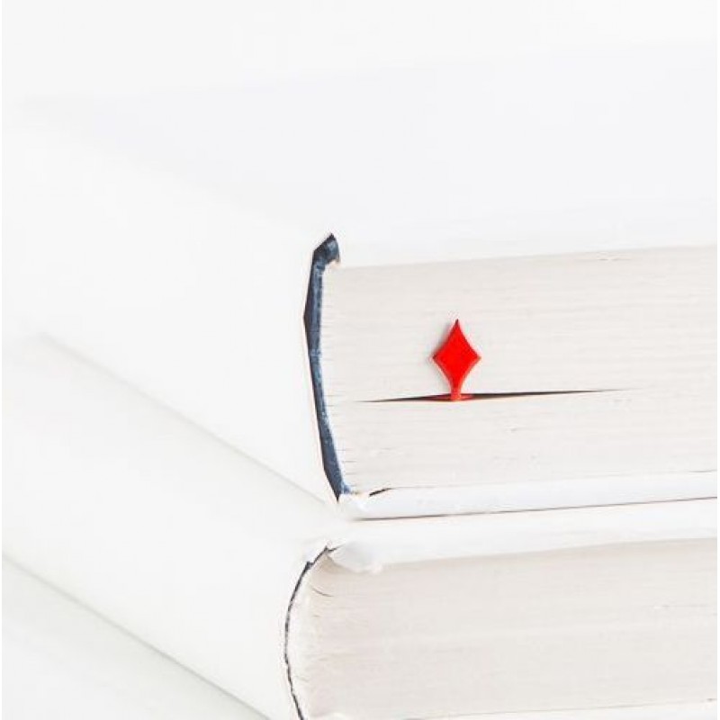 Красная металлическая закладка в форме одной из карточных мастей