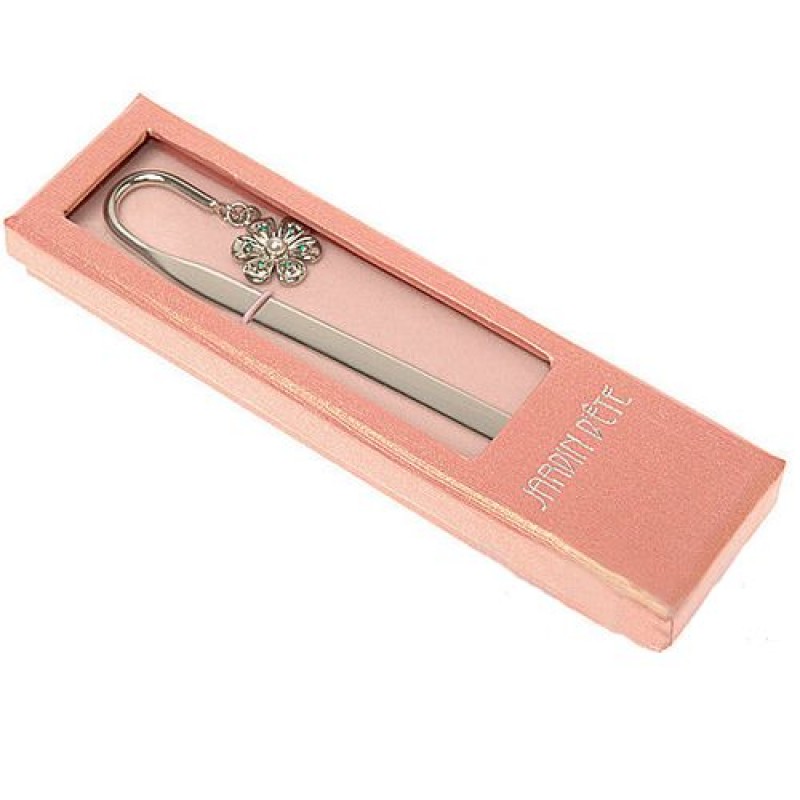 Закладка для книг от известной французской компании Jardin D'ete - нежный и стильный аксессуар. Закладка упакована в подарочную коробочку. Размер: длина - 13,5 см Материал: сталь, страз