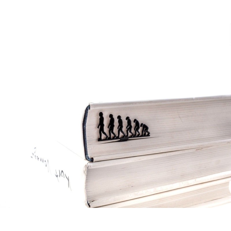 Крайне необходимая штука для чтения книг и приятный подарок для любителей чтения. Прощайте заломанные странички, обрывки бумажек, карандаши и развернутые книги, лежащие брюхом на том месте, где вы остановились. Используйте симпатичную металлическую закладку Эволюция, стильно и функционально.