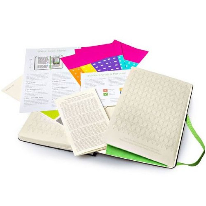 "Умный блокнот" Evernote Smart Notebook от Moleskine не только сохранил качество продукции известного бренда, но и добавил себе функциональности за счет синхронизации с одноименной программой на iPhone и iPad. С помощью новой функции "Камера для документов" вы можете оперативно сделать несколько фотографий страниц блокнота, которые будут помещены в одну заметку. Кроме того, благодаря новой точечной разметке, приложение автоматически исправит положение документа. Текст на такой фотографии будет распознаваться в Evernote намного лучше, и вы легко найдете свои записи в дальнейшем.