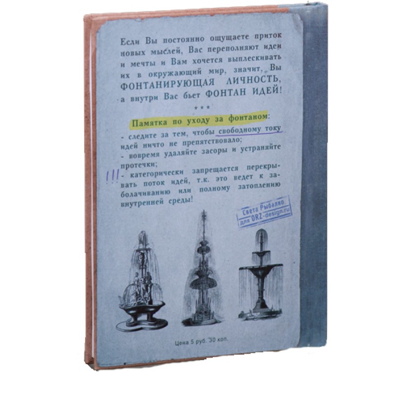 Записная книжка "Фонтан идей" - это блокнот в ретро стиле. Записная кжика для планов, рассказов, задумок - для всего того, чем проявляет, вдохновляет Ваша личность.