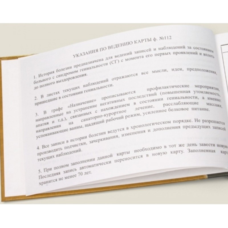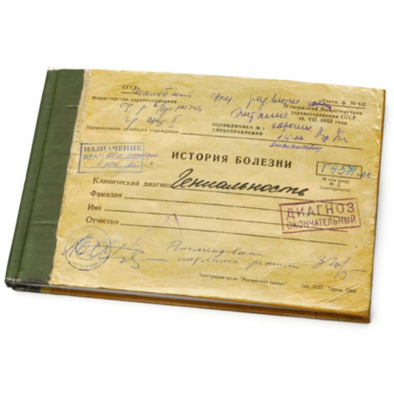 Клинический диагноз — "Гениальность". Горизонтальный крафт-блокнот с тематическими страницами "Указания по ведению карты"/