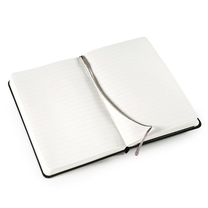 Эта записная книжка - классический вариант от Moleskine. Она выполнена в карманном формате. 192 разлинованные страницы заключены в твердый влагостойкий переплет черного цвета с закругленными углами, который надежно защищает их от изнашивания. Записная книжка оснащена прочным тканевым кармашком для записок и визиток, удобную закладку из тесьмы, а также эластичную резинку, удерживающую ее от раскрывания.