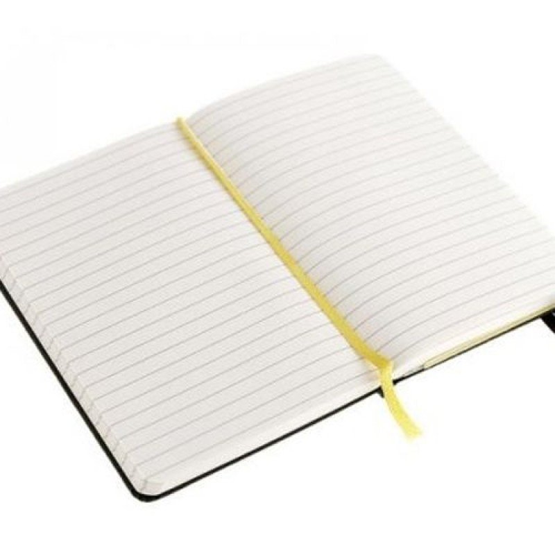 Классическая записная книжка от Moleskine состоит из 192 страниц в линейку, которые надежно переплетены нитями и защищены от внешних воздействий при помощи мягкой обложки черного цвета.