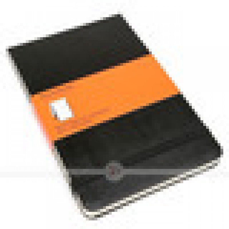 Практичный блокнот Moleskine Reporter среднего размера в твердой обложке черного цвета. Страницы разлинованные, имеется фиксирующая резинка и внутренний кармашек.
